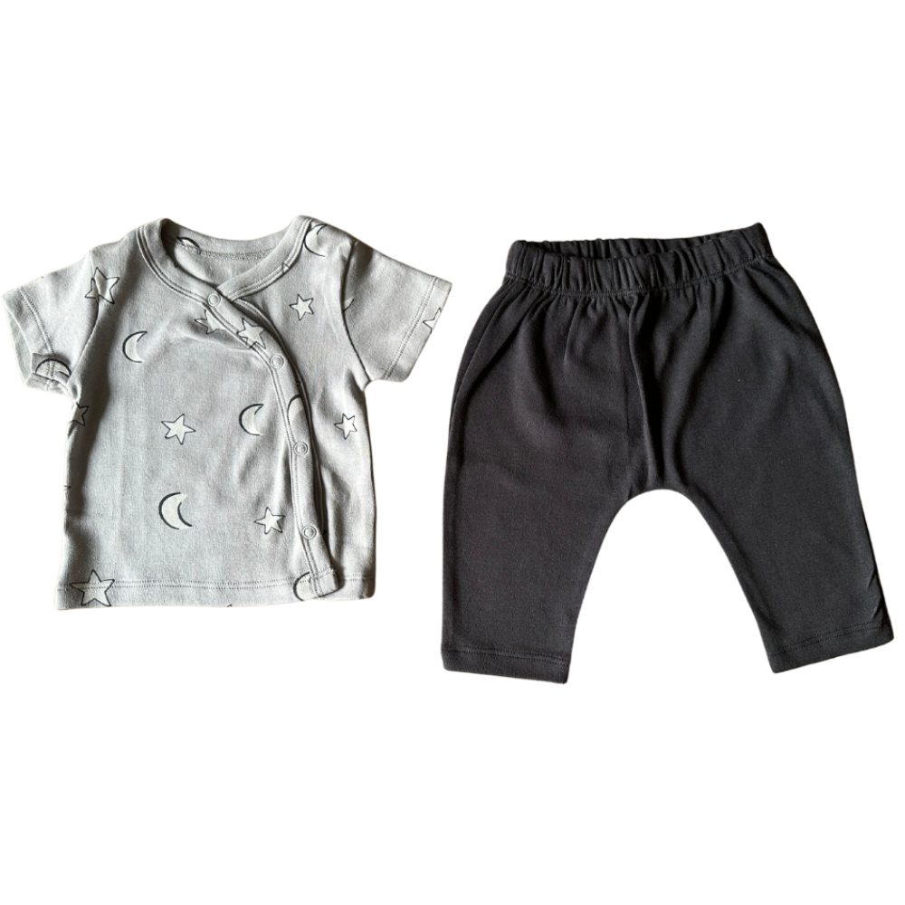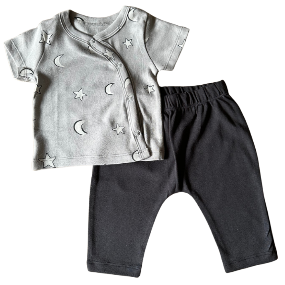 We have these sets in three options, one as a co-ordinated set, one as a cross button top with leggings and the third as a contrast set with a matching hat. Perfect for keeping warm on a day out or to stay snug on a day in, these outfits will sure keep your baby in style.